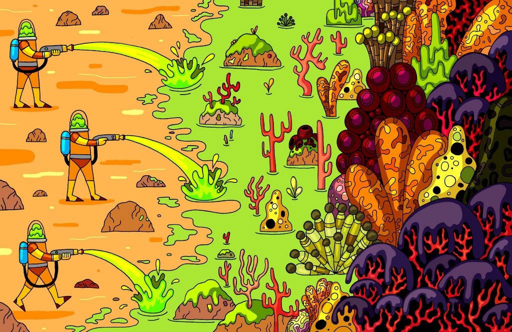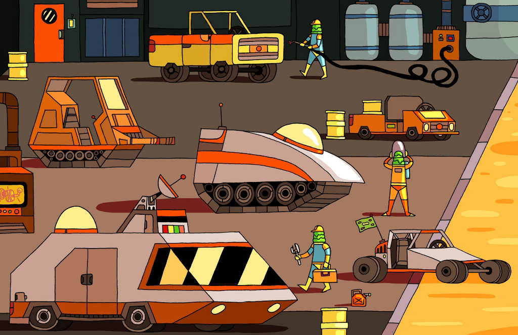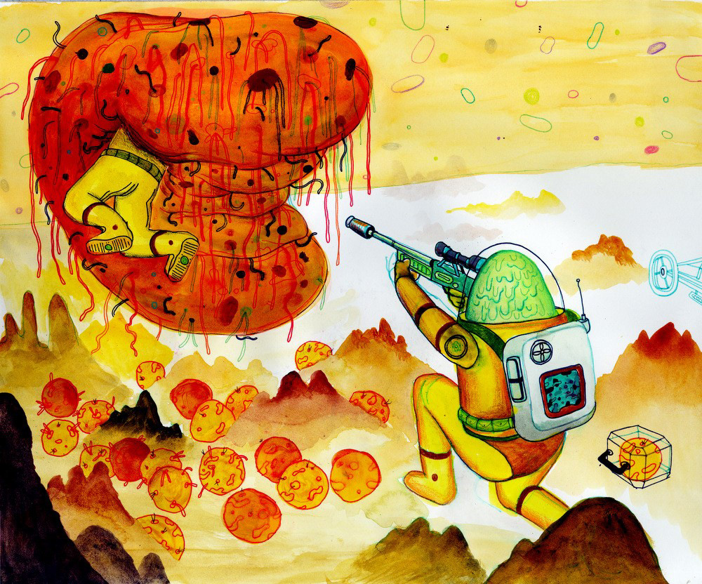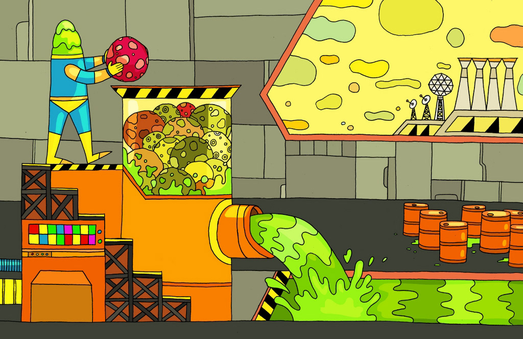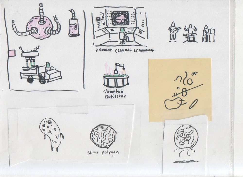 Slimelab started as an art school project based on the idea of terraforming a planet into something habitable, couched in the visual language of the toys and cartoons I loved as a kid. Since then, it's been my sandbox world I love to expand on in my free time as an artist. Below are some highlights from the endless drawings and many, many different permutations of Slimelab projects over the years.